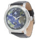 Uhr, Vintage Männeruhr mit schwarzem Lederarmband
