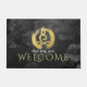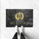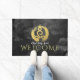 Yoga Mediation Instruktor Willkommen Doormat Vorlagen - Elegante Imitate Gold Foil Kalligrafie Yoga Meditation Posture auf Grunge Black Watercolor Paint Brush Strokes Hintergrund. Ideal für Yoga Instructor / Fitness Personal Trainer / Wellness-Center / Massage Salon / Beauty Resort / Massage Therapist und andere kreative Profis...