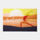 Yoga Fitness Studio / Meditation Instructor / Personal Trainer / Life Coach / Heiler / Reiki Master / Massage Therapy Willkommen Doormat Vorlagen. Elegante Yoga Meditation Pose / Crescent Mond Pose / Crescent Lunge Pose / Halbmond Pose (Ardha Chandrasana) / Surya Namaskar / Anjaneyasana Pose / Sun Salutation / Krieger 1 Yoga Pose / Yoga Moon Salutation / Chandra Namaskar / Silhouette am Shore See bei Sonnenuntergang.