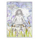 Eine ruhige, ruhige Grußkarte mit einer Frau in einer Yoga Meditation Pose gezeichnet in Stift und Tinte mit Aquarellfarbe Blume.