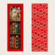 I WUFF to Read! ist auf der Rückseite dieses Buchzeichens, während ein süßer Yorkshire Terrier mit einem roten Bogen seinen Kopf durch ein Bücherregal mit Büchern auf der Vorderseite wirft.