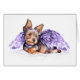 Der süße kleine Yorkshire Terrier, der auf einer Wolke ruht, hat lila Feathery Flügel. Yorkie Angel bringt jedem ein Lächeln ins Gesicht, zu jeder Jahreszeit!