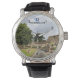 Uhr, Vintage Männeruhr mit schwarzem Lederarmband