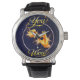 Uhr, Vintage Männeruhr mit schwarzem Lederarmband