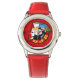 Kinderuhr aus Edelstahl mit rotem Lederarmband