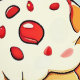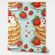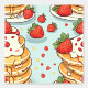 Eine Illustration einer Collage Pancakes, Erdbeeren und Sahne in Vintagen Rosa-, Blau- und Weißtönen mit einem Ambiente aus der Mitte des Jahrhunderts.