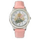 Kinderuhr aus Edelstahl mit rosa Lederarmband