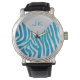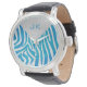 Zebra Blau und Weiß mit Monogramm Armbanduhr