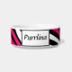 Kundenspezifische Keramikkatzenschüssel mit einem Schwarzen, einem Weiß und einem Farbmischung Zebradruckmuster, personalisiert mit dem Ihrem Namen des Haustieres.