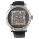 Uhr, Vintage Männeruhr mit schwarzem Lederarmband