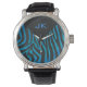 Zebra Schwarz und Blau mit Monogramm Armbanduhr