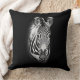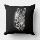 Ein Foto eines schönen schwarz-weiß gestreiften Zebra auf einem schwarzen Hintergrund.