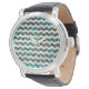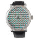 Zebra Zickzack braun und Aquamarin Armbanduhr
