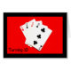 Ein Foto von vier Spielkarten - ein zwei Herz, zwei Spades, drei Diamanten und drei Clubs - ist das Thema meines "10 drehen ist ein großes Geschäft!" Geburtstagskarte. Die Karten, die insgesamt 10 Punkte haben, zeigen sich schön vor einem hellen roten Hintergrund.