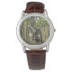 Uhr, Vintage Männeruhr mit schwarzem Lederarmband