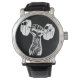 Uhr, Vintage Männeruhr mit schwarzem Lederarmband