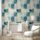 Zeitgenössisches blaues Indigo-Collage-Papier-Text Tapete