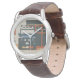 Uhr, Vintage Männeruhr mit schwarzem Lederarmband