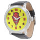 Coole Armbanduhr des roten Teufels. Cooler, Retro und angesagter, dunkler Prinz der Unterwelt-Uhr auf hellgelbem Hintergrund.