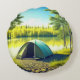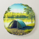 Hübsche Luftkunst, die ein Zelt in einem friedlichen Waldgebiet neben einem See darstellt.