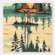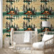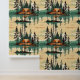 Wenn Sie Tapeten mit Stock und Schale in einer Hütte oder Camping-Thema Sommerhaus suchen, dann gehen Sie hier. Diese Vintagen Farben sind Waldgrün und Bräune und sind ein wiederholtes Muster von Zelten und Kiefern, das im Wasser reflektiert wird.