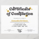 Trendy Certificate of Completion in schwarz und gelb mit Retro-Schriftart und Platz für Ihr Business-Logo. Perfekt für die berufliche Vervollständigung von Wimpern, Nägeln, Haaren und anderen Schönheitskursen. Sie können diesen Zertifikatsaward für jede Art von Akkreditierung verwenden, einfach den Text bearbeiten, um Ihre Bedürfnisse zu Anzug.