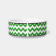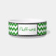 Stilvolle Keramikkatzenschüssel entwarf mit einem grünen u. weißen Zickzack Zickzackmuster und ein personalisiert mit dem Ihrem Namen des Haustieres.