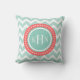 Zickzack Monogramm für Minze und Korallen Kissen