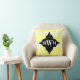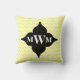 Ein elegantes Zickzack Muster in Gelb und Weiß mit einem schwarzen Vierfolienmotiv in der Mitte. Die beiden Seiten dieses wunderschönen Dekorateurkissens werden mit Ihrem Monogramm personalisiert.
