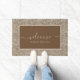 Eleganter Empfang Doormat mit braunem, Zickzack Hintergrund. Personalisieren Sie Ihre Daten mit Ihrem Familiennamen oder Text.
