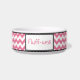 Stilvolle Keramikkatzenschüssel entwarf mit einem rosa u. weißen Zickzack Zickzackmuster und ein personalisiert mit dem Ihrem Namen des Haustieres.
