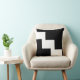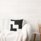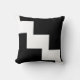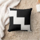 Zeitgenössisches Wurfkissen mit weißem Zickzack Muster und schwarzem Hintergrund.