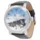 Uhr, Vintage Männeruhr mit schwarzem Lederarmband