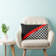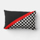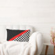 Designer-Wurfskissen für Motorsportsfans und -Rennläufer. Ein Zielflaggemuster wird auf Hälfte Kissen mit Schwarzem auf der anderen Hälfte sich trennte durch einen roten Streifen gekennzeichnet. Diese laufenden themed Throwkissen würden das perfekte laufende verzierte Schlafzimmer des Touch toa-Kindes sein.