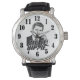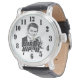 Uhr, Vintage Männeruhr mit schwarzem Lederarmband
