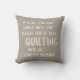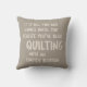 Fun werfen Kissen in taupe mit einem lustigen Zitat, dass alle Quilter sich darauf beziehen können, mit einem leeren Kofferraum zu quiltieren und es nicht zu erkennen, bis es zu spät ist.