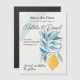 Diese elegante und trendige Zitrone und Blau Blätter Hochzeitseinladung mit Aquarellfarben ist perfekt für eine moderne und stilvolle Hochzeit. Das moderne Vintage Design besticht durch das romantische, sizilisch inspirierte Aquarelllachs auf einem blauen Blätter Zweig. Romantische botanische Thematik-Illustration für eine schicke Hochzeit: moderne Hochzeit, italienische Hochzeit, sizilianische Hochzeit, Aquarelllemonen, Gartenfeiern, Obst, trendige Hochzeit, minimalistischer, botanischer Garten, gelb und blau, Budget-Hochzeit,