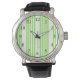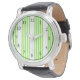 Zitronengrün und weiß, fünf Streifen Muster Armbanduhr