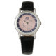 Uhr, Klassische Damenuhr mit schwarzen Lederarmband