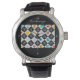 Uhr, Vintage Männeruhr mit schwarzem Lederarmband