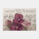 Ein Stillleben von vier rosa Stiefmütterchen auf einem Vintagen Notenblatt mit dem Titel "Unter den Stiefmütterchen". Fotografie von Sandra Foster © Sandra Foster Designs - Zazzle.