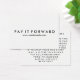 Doppelseitige schwarz-weiße Pay It Forward-Karte zur Feier des "Random Acts of Kindness" Tages und der 365 Tage-pro-Jahr-Bewegung. Die Rückseite der Karte listet einfache Ideen auf, wie wir alle Freundlichkeit teilen können, den ganzen Tag über. Jede Textzeile ist anpassbar, wenn Sie Ihre eigenen Ideen haben, können Sie jede Zeile der Liste ändern.