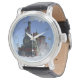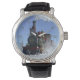 Uhr, Vintage Männeruhr mit schwarzem Lederarmband