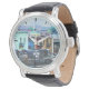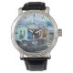 Uhr, Vintage Männeruhr mit schwarzem Lederarmband