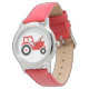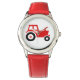 Kinderuhr aus Edelstahl mit rotem Lederarmband