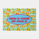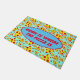 Farbenfrohe und trendige aqua blue Doormat mit Pizza-Scheiben aus Pepperoni bedruckt, mit dem Satz ZUHAUSE IS WHERE THE PIZZA IST. Ideal für Pizzafreunde, Pizzeria-Koch und Pizzeria-Restaurant
