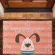 Zuhause ist, wo jemand läuft, um dich Niedlich Doormat zu grüßen. Dieses Design beinhaltet einen niedlichen Hund auf einem gestreiften Polka Dot Hintergrund mit Hündchen. Das ideale Geschenk für alle, die ihr Haustier Lieben. Personalisieren Sie dieses benutzerdefinierte Design mit Ihrem eigenen Text.