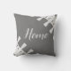 Zuhause silber und graues Kissen. Zuhause-Text kann angepasst werden.