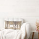 Rustikales, elegantes Kissen aus Lumbalkissen mit einem hellen Holzfußboden mit dem Wort "ZUHAUSE" und dem "O" als Silhouette des Staat von Connecticut. Die Rückseite hat Ihren Familiennamen in weißem Text.