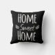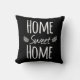 Dieses entzückende Kissen ist der perfekte Akzent für jeden möglichen Raum in Ihrem Zuhause. Es ist ein schwarzes Kissen, das einen typografischen Entwurf kennzeichnet, der "Zuhause-süßes Zuhause" liest. Der Wortbonbon wird durch Blätter auf beiden Seiten betont.